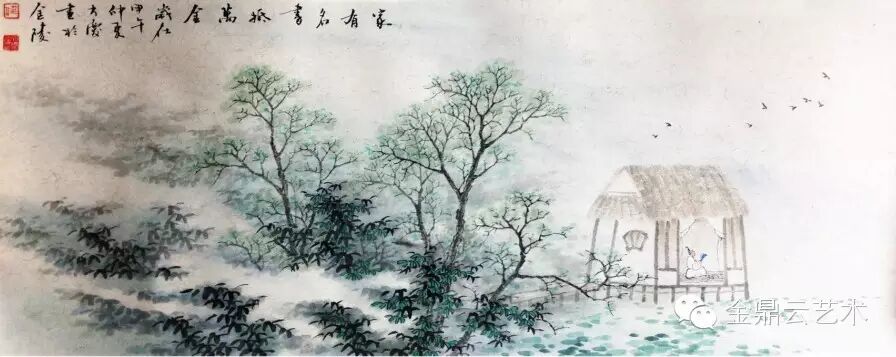 十年前,他的山水画笔墨造型功夫,已在其故乡扬州显露头角,如何提高自己的艺术水平,经过苦苦思考,他悟出自己缺少的是读书不够,所谓“不读书写字之师,即是工匠”(清代松年语),因此“绘事必须多读书”(明代李日华语),“胸中有万卷书,目饱前代奇迹,又车辙马迹半天下,方可下笔”(南宋赵希鹄语),“读万卷书,行万里路,胸中脱去尘浊,自然丘壑内营,成立鄞鄂,随手写出,皆为山水传神矣”(明代董其昌语)。于是,他断然赴宁攻读美术学硕博研究生(研究方向中国画论),一读就是六年,继承发扬俞剑华学派“一手拿文笔,一手拿画笔”的治学精神,以唐僧去西天取经的决心,苦苦修练,终成正果。刘伟冬教授跋其《居游佳境图》写道:“大庆学棣从事美术史论研究,文章练达且多有新意,同时又勤于笔墨耕耘,所造山水之境,得天地之精神,藏自然之韵律,用笔精到,水色恰如,虚实益彩,既有苍茫之势,又有温润之柔。大庆以文养画,又以画引文,画文相辅,必有大成。”有志者,事竟成。在艺术求索的道路上,会遇到许多的艰难,相信他,每克服一个艰难,必付出许多辛苦,定能上一个新的台阶。天道酣勤,其前途是无量的。
