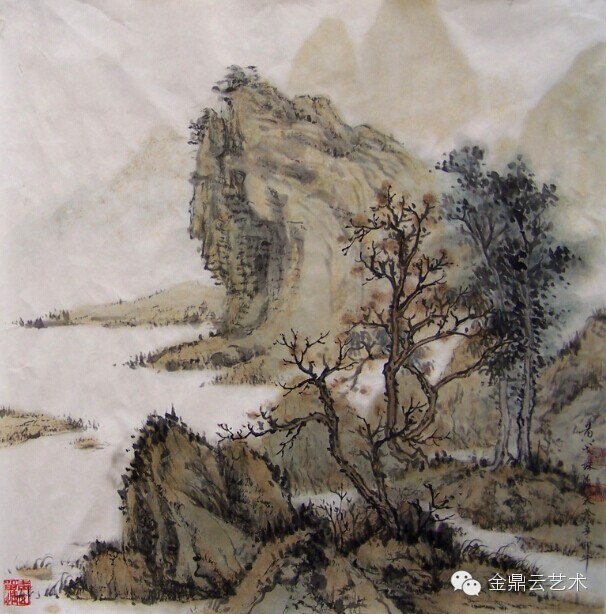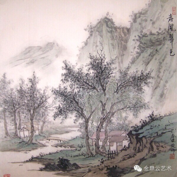 她同样擅长山水画,在技巧上努力追求最纯正的中国画传统,虚心求教,转益多师,近年来取得长足的进步,以致很多人并不以为这些作品出自一位韩国女画家之手,这背后饱含多少努力与付出啊!虽说是女画家,但金宝敬画画从不胆怯羸弱,下笔飒飒生风、锋出八面,其质朴生拙的线条不沾丝毫俗气。这是她的画最可贵的一面。也许她不像中国人那样循规蹈矩的学习传统,所以她画画有种无法无天的气魄,没有法的束缚反而流露出更多的天性。笔墨质朴、设色纯净、气息清润应是她山水画的基本特征,这是学术积淀对她的影响,也是韩国人追求质朴本真的审美趣味的反映。学识、天性以及后天习得成就一位追求最纯正中国传统味道的山水女画家,而她却是来自韩国,可见中韩绘画的交流如此的紧密呀。